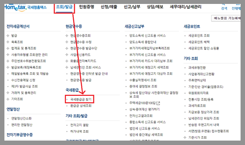 - 접근경로: 조회/발급 >> 국세환급 >> 국세환급금 찾기