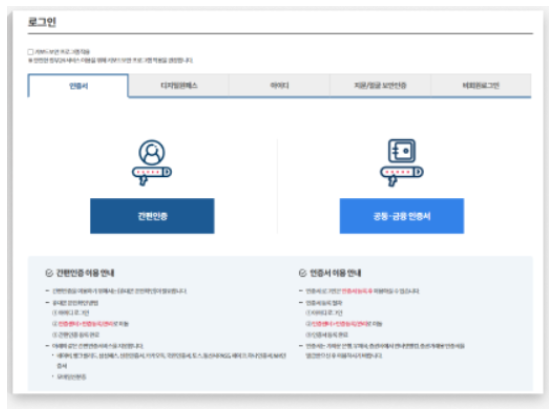 - 본인인증 단계: 휴대폰 인증, 공동인증서, 금융인증서 중 하나를 선택해서 본인인증을 진행합니다.