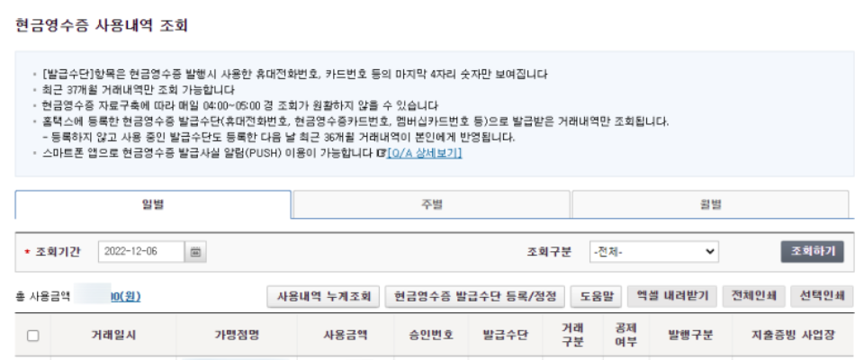 ⚠️ 현금영수증 조회 시 주의사항